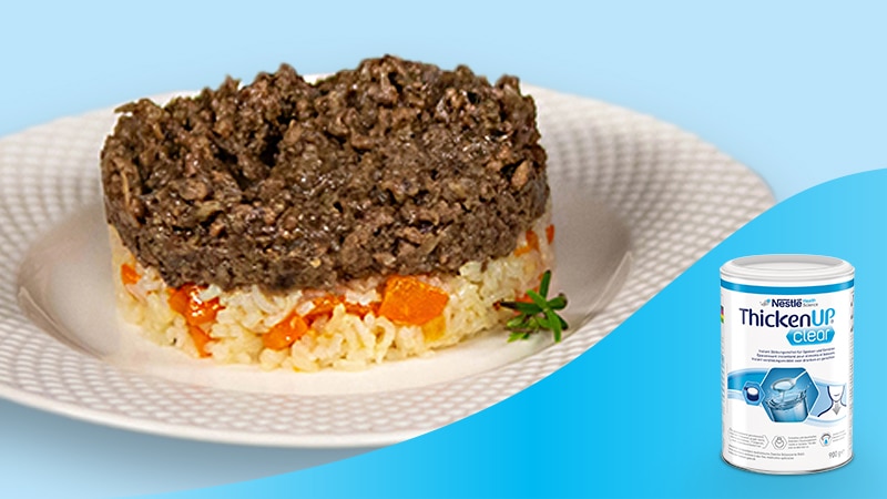 De voorbeeld recepten maken gebruik van het verdikkingsmiddel ThickenUp® Clear. ThickenUp® Clear is een verdikkingsmiddel dat wordt ingezet voor de ondersteuning van het dieet van mensen met slikproblemen. ThickenUp® Clear moet onder medisch toezicht worden gebruikt. Vraag uw zorgprofessional voor meer informatie.